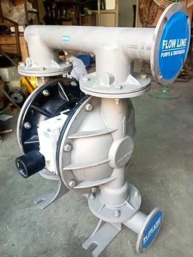 Air Operated Double Diaphragm Pump-AODD Series Air-operated double diaphragm pumps (AODD pumps) are designed for fluid transfer in a variety of Industrial applications. AODD diaphragm pumps reliably convey a wide range of fluids, viscous media, corrosive fluids and solids. AODD Series offers diaphragm pumps in different materials (metallic, non-metallic) and drive principles (electric, pneumatic) to meet the needs of Customer application. AODD pumps are not only the most cost effective, reliable and energy efficient solution, but our advanced air distribution system dramatically increases pump productivity by reducing air consumption and maintenance of most energy. The ideal solution for increasing your productivity, reducing energy consumption, reducing air consumption and simplifying maintenance. Flow line Pumps of the leading manufacturers of Pneumatic diaphragm pumps, we offer a full line of AODD pumps in a variety of sizes and flow rates to meet the versatility and flexibility you need to make pumping simple. Pump body materials Polypropylene(PP) Polyvinylidene Fluoride(PVDF) Aluminum Stainless Steel-316 Diaphragm materials  Teflon(PTFE)  Sentropene  Fluorine Rubber  Polyurethane  Buna-N Rubber Operating Data: Air Pressure : 8.6Kg/cm2 Head : Up to 45 Mtr Capacity : 850 LPM Drive : Air Compressor /Electrical Motor Connection : Threaded/Flange/TC Max Handling temp : 100 Degree MOC : PP/PVDF/Aluminium/SS-316 Features : AODD diaphragm pumps offer many unique advantages in a variety of applications, including:  Self-priming  Shear sensitive  High suction range  Variable flow and pressure  Viscous and non-viscous product transfer  Easy to operate and maintain  Corrosion resistant  No heat generation Application: Transfer peanut butter, pickles, mashed potatoes, small red sausages, jam, applesauce, chocolate, etc. Transfer Pumping paint, gum, pigment , Adhesives and glues, all kinds of available pump suction, Various abrasives, corrosives, petroleum and mud, cleaning oil scale and general containers.